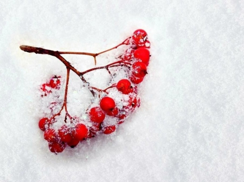 Ягоды рассыплешь на снегу узором,