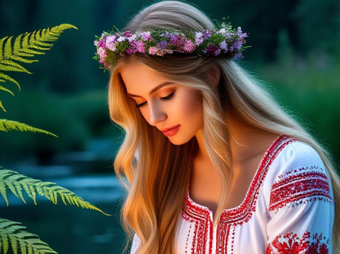 Еще утром возле колодца стояла девушка по имени Лада, бережно переплетая стебли 12 заветных цветов праздника Купалы в изящный венок. Её длинные золотистые косы свободно струились вдоль спины, оттеняя тонкую талию и мягкость черт лица. Люди часто обращались к ней за советом, ибо владела она особым даром — видела сквозь завесу будущего, предсказывая события, скрытые от глаз простых смертных.
