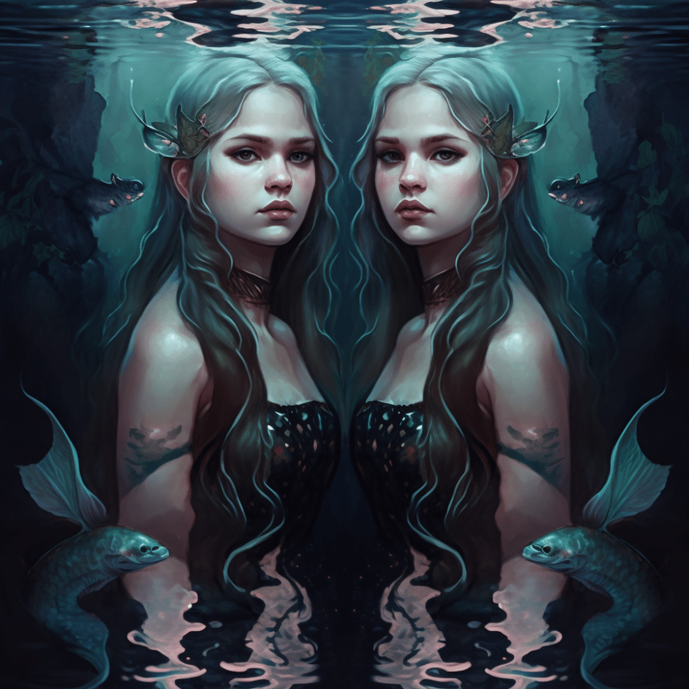Итак, в этой визуализации решила показать духов-хранителей - в образе русалок и в виде кинжалов, а так же аквамарин)))