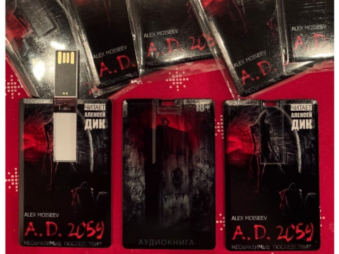 Всем привет! Наконец-то готовы usb-флешки (объёмом 4 гига) с оригинальным дизайном A.D.2059 На флешке записана аудиокнига (формат mp3 с максимально качественным битрейтом 320 кбит/сек) A.D.2059. Необратимые последствия (полная версия с дополнением: хронологией событий, предшествующих действиям в романе) + видео-клип (буктрейлер).