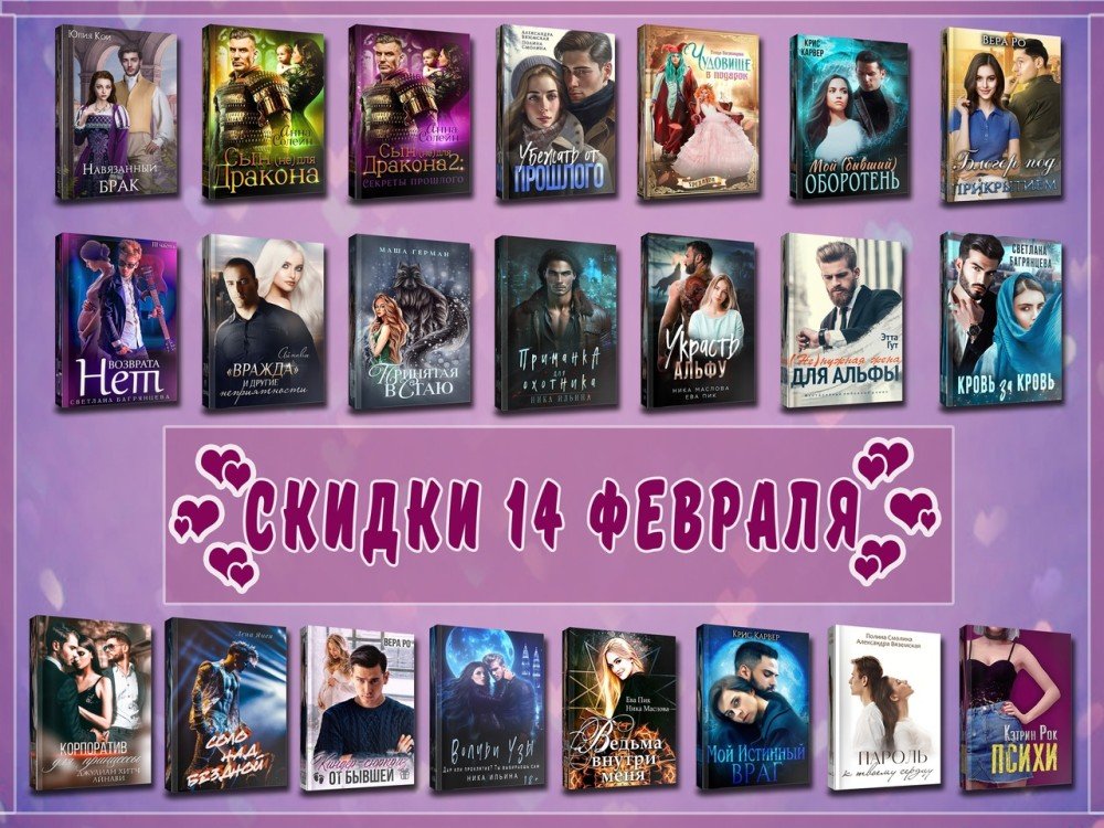 В честь 14 февраля и того романтичного настроения, которое дарит нам этот день, множество авторов решили собраться и сделать подборку чудесных историй про любовь. Здесь и фэнтези, и современные любовные романы, и попаданки, и драконы, и брутальные оборотни, и вредные боссы, которых объединяет одно - романтика и любовь! Тут точно можно найти историю на свой вкус. Бонус к празднику -- все эти книги сегодня реализуются с приятными скидками.