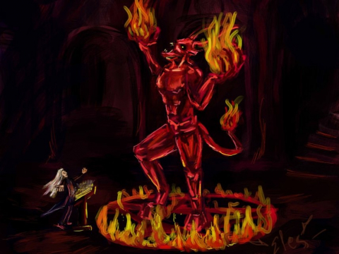 - Зачем, о, смертный, ты потревожил мой покой? - угрожающе завыл демон, объятый кольцом ярящегося пламени.