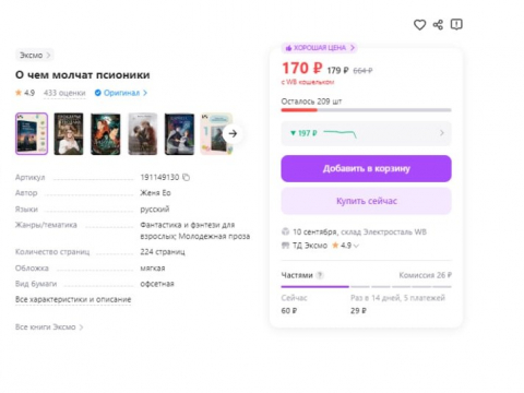 На ВБ аттракцион невиданной щедрости на "О чем молчат псионики" - всего 170 рублей. Арт 191149130