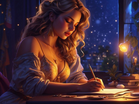 Когда у меня было достаточно свободного времени, я писала регулярно. Например, в школе или в не так давно прошедший ковид. Изо дня в день (точнее из ночи в ночь) садилась за роман, ложилась спать с мыслями о нем и просыпалась, чтобы поскорее дописать то, что не успела накануне. Сейчас пишу скорее наплывами, ибо времени не хватает.