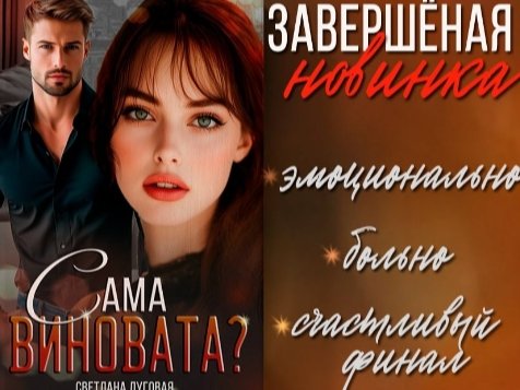 приглашаю вас в завершённую новинку Светланы Луговой "Сама виновата?". Эмоционально, жизненно и местами больно. Надеюсь, что при прочтении будет о чём подумать, попереживать и, конечно, улыбнуться, ведь финал у истории счастливый. В честь старта на новинку скидка - 25%