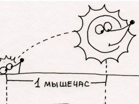 В книге про Микса и Макса придумана система измерений мышечас. На сколько частей его лучше делить, чтобы получить мышеминуту и мышесекунду ещё не решили. Сейчас мы пишем 7 часть и в ней нужен будет аналог секунды. Следите за нашими историями. Пока на сайте 3 части, скоро опубликую 4,5 и 6: