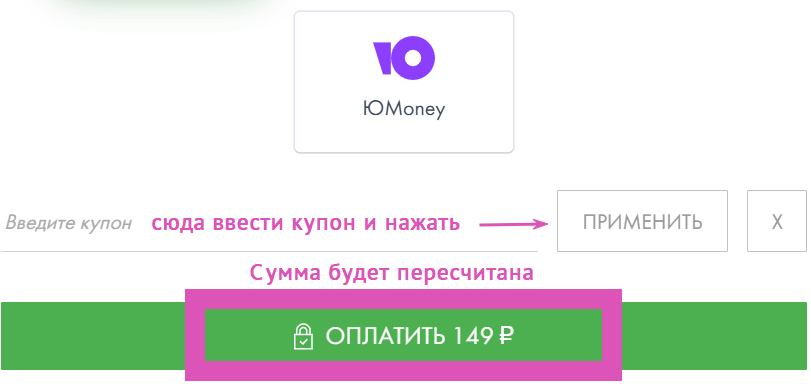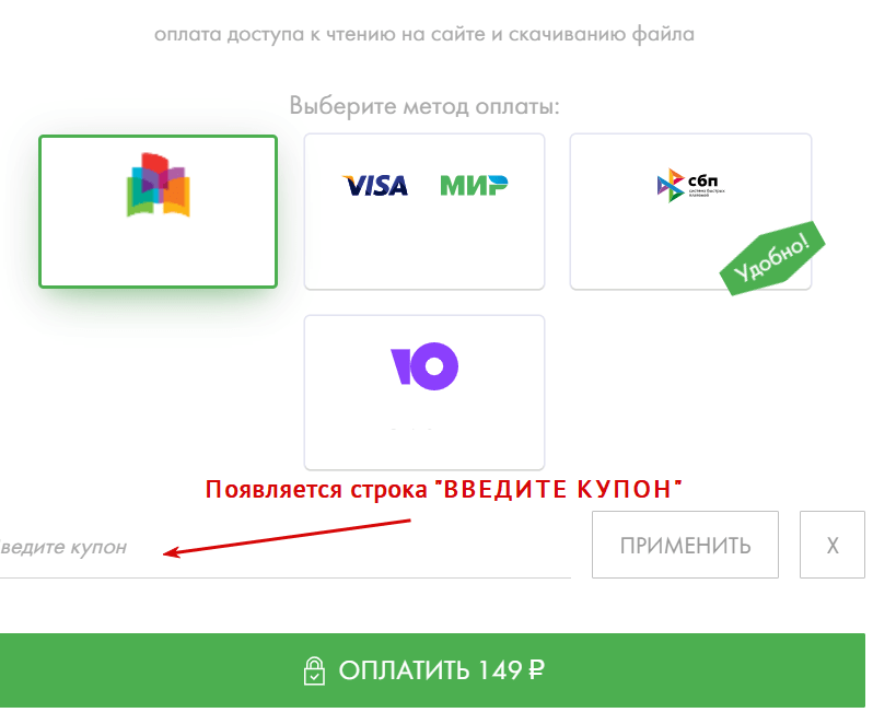 Шаг 3. Выбираем удобный способ оплаты и переходим к строке "введите купон"