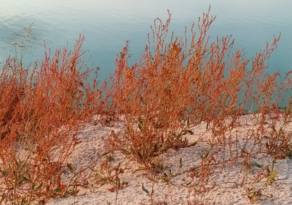 Всё в том же моем инопланетном "заповеднике". Видимо, дело не в свойствах звезды, а в почвах. Те же самые растения, проижвающие рядом, в нормальных лесах и полях, имеют обычный зеленый цвет. А растущие у карьеров - красный.