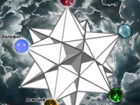 На картинке икосаэдр повёрнут к нам микрокосмом (чёрная пентаграмма), серенькая на заднем плане это малый лик.