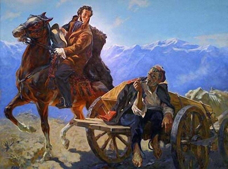Пушкин встречает гроб с Грибоедовым во время путешествия на Кавказ.