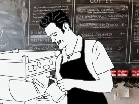 На стене, за стойкой, перечень напитков и пирожных с иноземными названиями. Немедленно продавец приступает с вопросом: