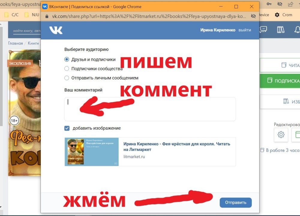 4. ВАЖНОЕ! Смысл акции - не просто поделиться ссылкой на понравившуюся вам книгу, а привлечь к ней внимание своих подруг! ДЛЯ ЭТОГО, КРОМЕ ССЫЛКИ, ПИШЕМ ПАРУ-ТРОЙКУ ПРЕДЛОЖЕНИЙ РЕЦЕНЗИИ С ПРИГЛАШЕНИЕМ ПОДПИСЧИКОВ ЕЁ ПРОЧЕСТЬ! Как технически вставлять ссылку в ОК или делиться в ВК, в картинках посмотрите ниже - ничего сложного!