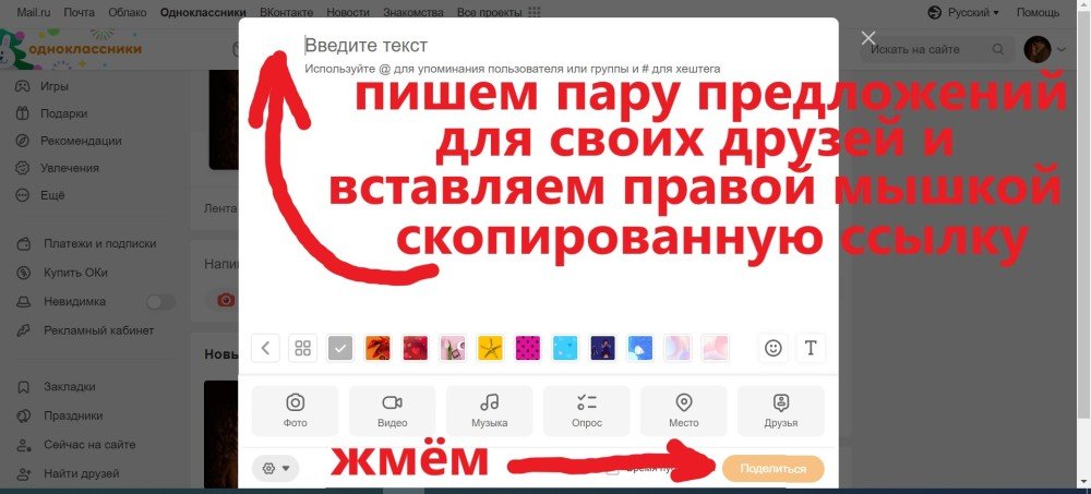 КАК ПОДЕЛИТЬСЯ В "ОДНОКЛАССНИКАХ":