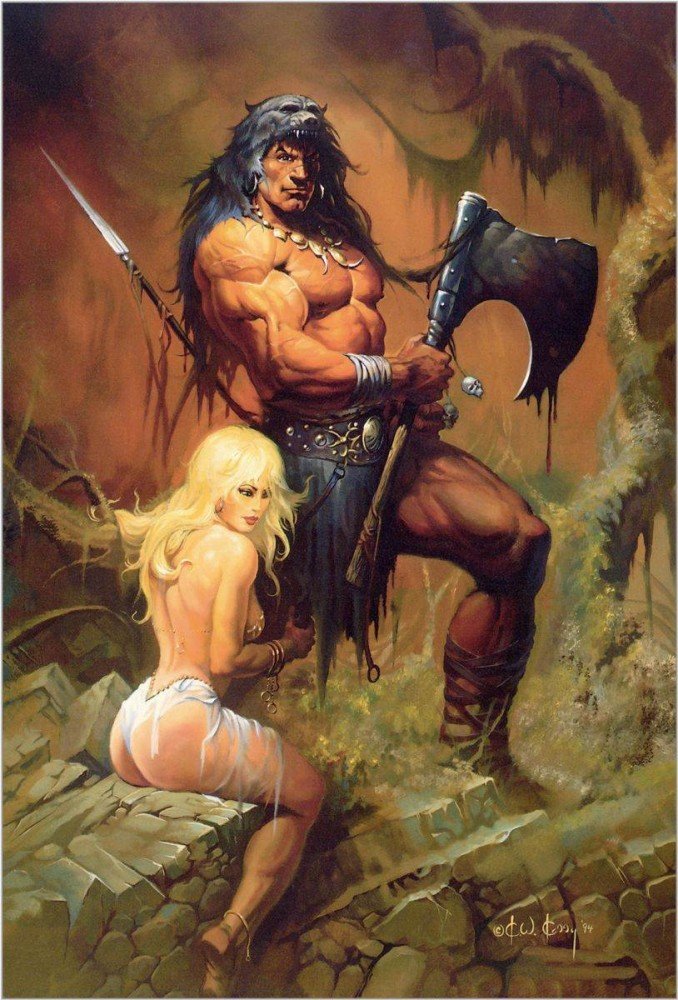 Но Фразетта, как не крути, создал основы фэнтези-живописи, в мастерской Фрэнка Кен находился частенько, так что - всё нормально.