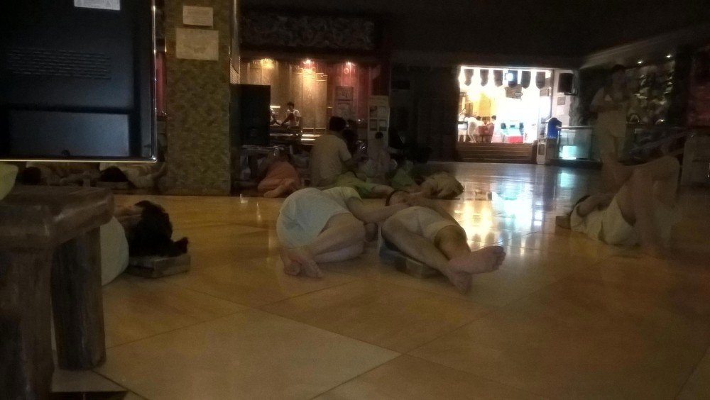 А после всего этого одеться в шортики-маечки и отправиться в общее отделение. В самом большом зале посмотреть гигантский телевизор. Поесть (Не знаю, почему в дорамах в банях традиционно едят яйца. Мы традицию не нарушали: яйца вареные, печеные, копченые+напиток из риса). Поиграть на игровых автоматах, попеть в караоке, посетить интернет-кафе... А в конце сделать традиционные бараньи рожки и лечь спать тут же на греющемся полу.