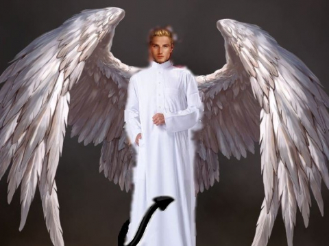 Хлопки крыльев завихрили воздух и взбили вверх облетевшие листья, брызги и пыль. Против света смотреть было неудобно, да и в глаза всякий мусор попал от сего эффектного появления. Поэтому, когда я проморгалась передо мной стоял ангел. Вот такой, как рисуют красивенько в мультиках. Светленький и пушистый, с доброй улыбкой всезнающего дядюшки. В белых свободных одеждах, чем-то напоминающих аба бедуинов. Правда, без нимба.