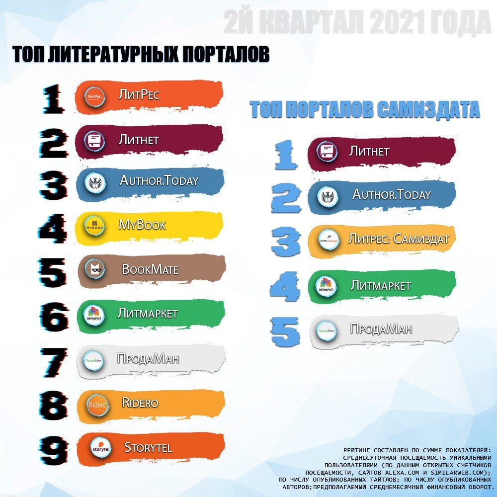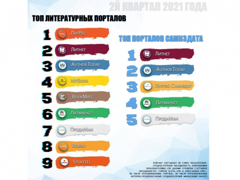 • Рейтинг литературных порталов по состоянию на 08.07.2021*: