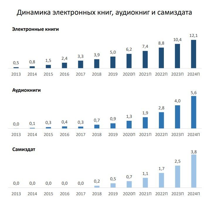 Электронные книги растут на 21% в год, аудиокниги — на 60%.