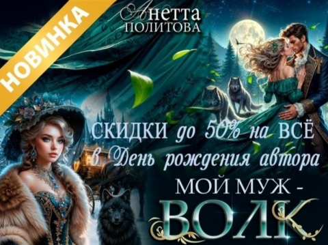 Дорогие читатели, так приятно, что новогодние каникулы, хорошее настроение и ПРАЗДНИК начинается с моего дня рождения. Никогда не думала, что стану писать книги, и тем более, что кто-то ими заинтересуется... даже купит.. Ну, хоть одну... А теперь влюблена своих героев, живу в этих мирах, стараюсь придумать все новые и новые истории. Жаль что в дне не 36 часов и что надо что-то оставить для сна. На этой неделе на сайте стартовала моя НОВИНКА "Мой муж-ВОЛК", я очень долго работала над книгой, общалась с историками, перелопатила кучу информации... Фэнтези можно назвать историческим, в сюжет ненавязчиво вплетены реальные события того времени и ныне существующие архитектурные объекты. Благодаря этому роман получился на грани реальности и вымысла. Надеюсь он вам понравится. Вас ждут традиции, древние обряды Ирландии, тайны рода охотников на волков и сильные чувства... Любовь или спасает, или... убивает...