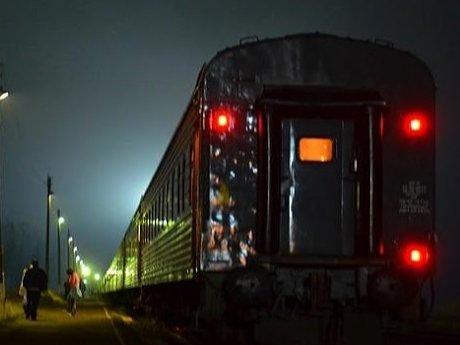 Туман и ночь, несётся поезд, и лишь сверкают фонари.