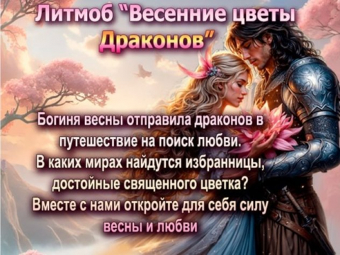 Дорогие читатели, Мы приглашаем вас в праздничный литмоб "Весенние цветы драконов"! Вас ждут 13 увлекательных книг, полных любви, магии, страха и надежды, где каждый герой сталкивается с испытаниями, способными изменить судьбу. Эти истории подарят вам возможность стать частью этого волшебного мира! Каждая история — это цветок, который расцветает в вашем сердце, и от которого нереально оторваться. Подарите себе этот литературный букет и позвольте себе насладиться чтением, которое станет настоящим подарком для всех поклонников Фэнтези!