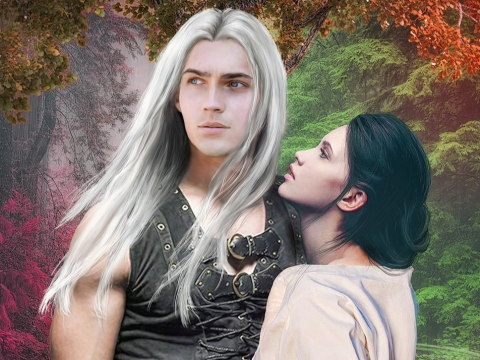На второй части я бы хотела отдать дань уважения другим немало важным персонажам: Талине и Ривару. Их изобразить по тому же примеру, но на фоне горящего Вельнара и черного замка королевы Рейнары.