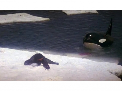 Теперь о самих героях. Среди всей команды очень яркими получились сам капитан Нолан и Рейчел. Капитан хотел поймать касатку для аквариума и не подозревал, какой огромной трагедией с непредсказуемыми последствиями может обернуться его охота. Сообразив, что поймал самку касатки и глядя на её твёрдое нежелание жить в неволе, он осознает свою ошибку, отпускает её, думая, что искупит свою вину, но начало его несчастьям положено, а самец касатка становится на путь мести за своё семейство. Капитан весь фильм терзается угрызениями совести, его личность проходит сложный психологический путь прежде чем встретиться с касаткой. Зритель также проходит сложный путь от возмущения, негодования, ненависти к капитану к сопереживанию и жалости в некоторой степени. Рейчел – вторая героиня, в душе которой бурлят противоречивые чувства: от жалости к киту-убийце – до момента, когда она безжалостно подаёт Нолану ружьё, чтобы застрелить кита.