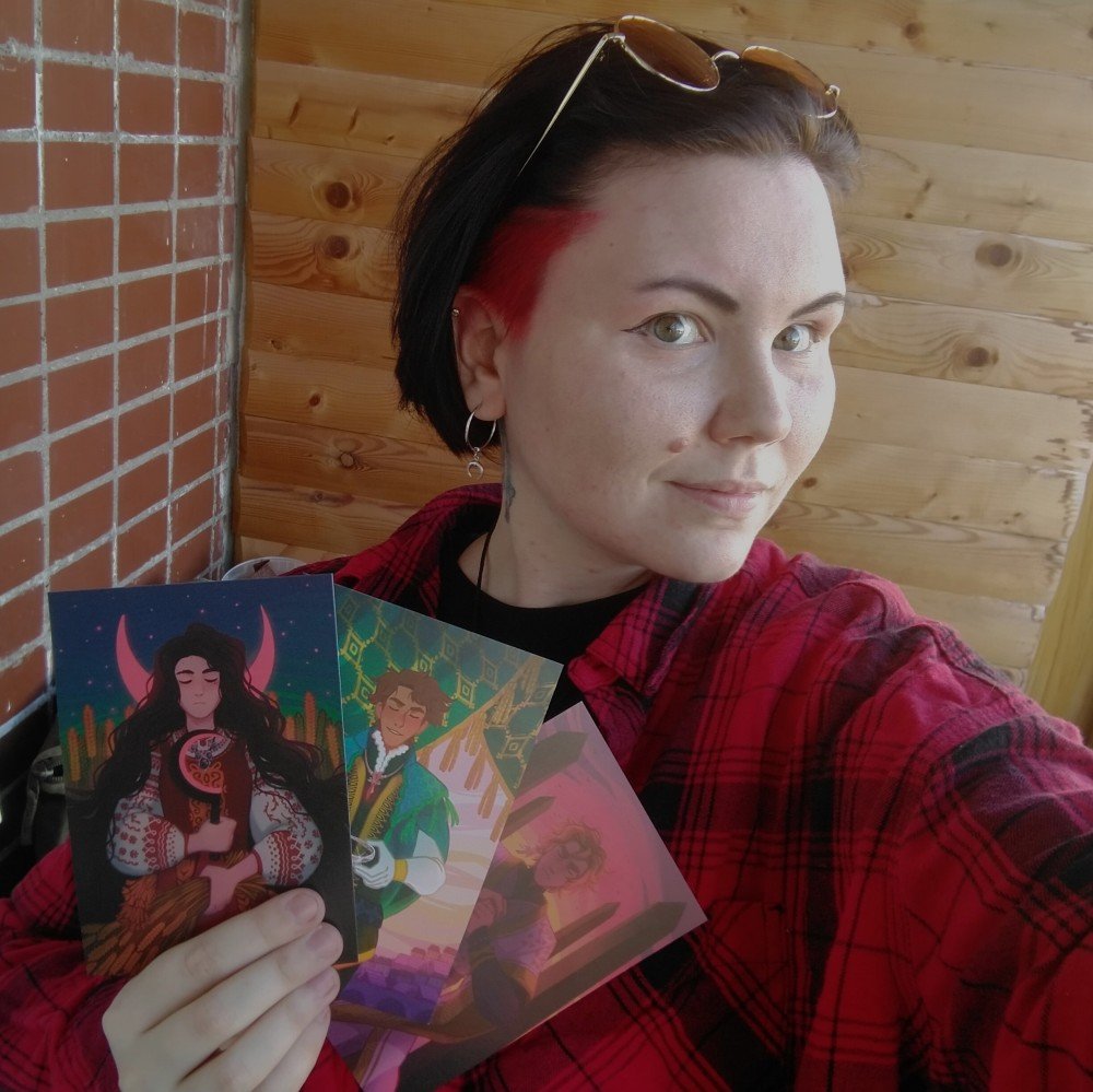 С нас: любая открытка (в любой город по России и СНГ), с подписью и пожеланиями от автора или без (а вдруг на подарок кому-то?) на ваш выбор.