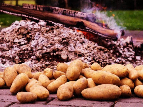 Костёр догорает. Только тлеют дрова побольше. И, внимание, наступает очередь картошки. Кладём, печём... Кажется, ждём целую вечность! И вот этот вот момент: жонглируя огненной картофелиной, как-то в воздухе чистишь её и с солью в рот. Ммм... Все руки-рты чёёёрные. Но счастья полны штаны!... И вместе с тем грустно, ведь пора собираться домой.