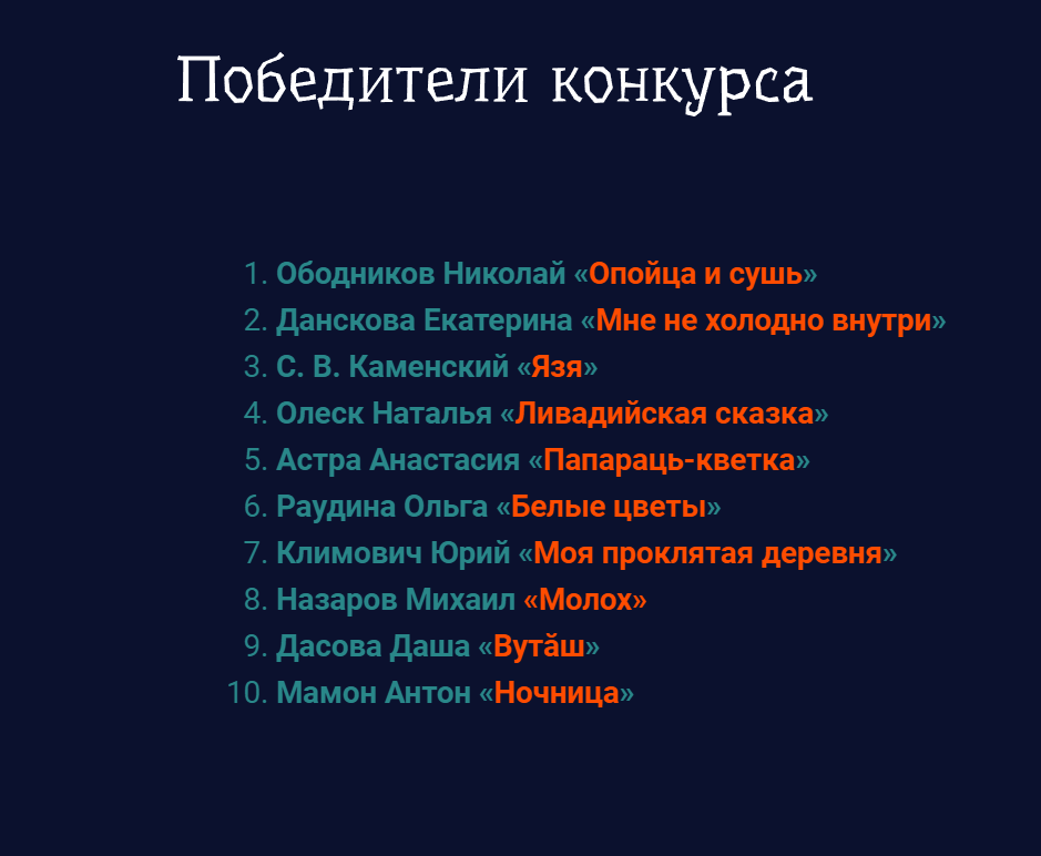 Сегодня, увидев список победителей, я вдруг понял, что оплакиваю павших. Я глажу песок, что впитал ваши пролитые буквы. Переиграйте нас в следующий раз. Мы будем ждать.