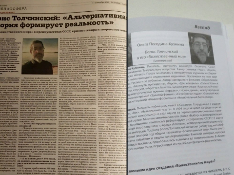 Ровно год назад вышло моё первое за 30+ лет литературной деятельности писательское интервью - о литературе и политике, альтернативной истории и фантастике, свободе выбора, состязании альтернатив и их значении для нашей реальности. И о "Божественном мире", конечно.