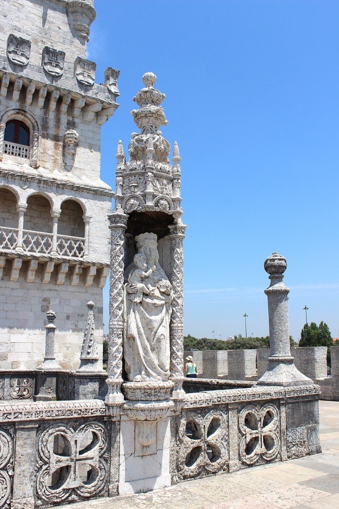 Это тоже стиль мануэлино - какая-то безумная эклектика, тут и мавритания, и готика, и возрождение, и вовсе немыслимые экзотические узоры. Вообще, Башня когда-то была серьезным военным сооружением, с бойницами и пушками. Но при взгляде на нее я всё никак не могла отделаться от мысли, что архитектором была девочка. Уж больно много завитушек для солидной крепости. :)