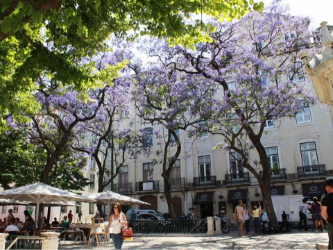 Португалия (6). Уличный лифт Санта Жушта и жакаранда