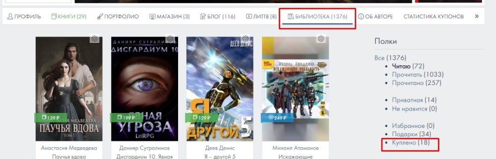 • Если автор подарил вам книгу, а позднее удалил её - то доступ также никуда не исчезнет. Вы всегда сможете попасть на страницу книги и прочесть её целиком, если кликните на книгу на полке в вашей БИБЛИОТЕКЕ. Либо, если книга там не видна, то: