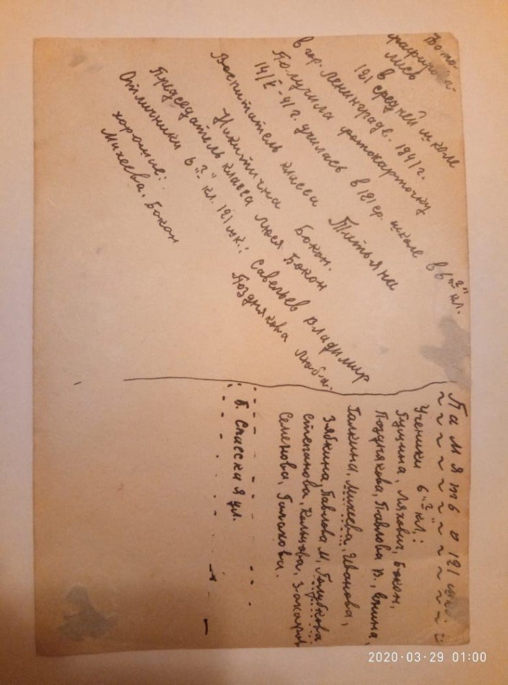 С замиранием сердца люди вынимали треугольные письма, приходившие с фронта. К сожалению, у нас не сохранилось ни одного фронтового письма, все они были утеряны. Самое запоминающееся письмо было тем, которого они не получили. С братом была договоренность раз в неделю отправлять письма. Поэтому каждую неделю родные ждали письма с фронта. Но тот день, когда почтальон прошел мимо их калитки, не положив долгожданного треугольника в ящик, моя бабушка помнила всю жизнь.