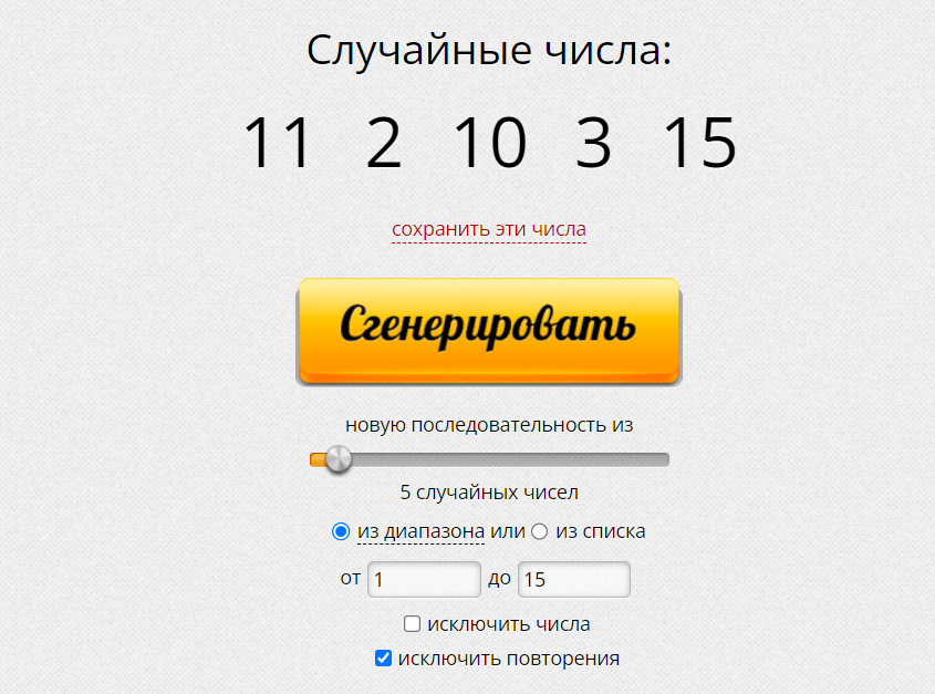 Победители под номерами: 11, 2, 10, 3,15