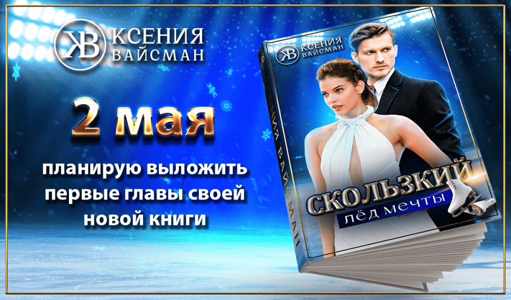 2 мая, планирую выложить первые главы своей новой книги «Скользкий лед мечты».Книга будет выкладываться по главам, с ежедневной периодичностью на нескольких ресурсах. Буду рада видеть вас на страницах своего нового романа! Приглашаю всех к прочтению!