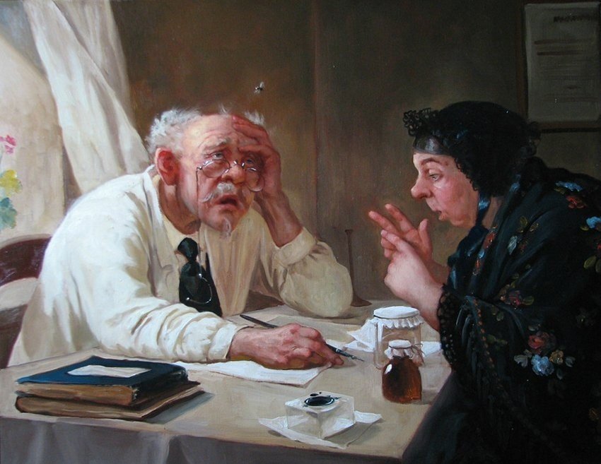 — Так вы же сами сказали: на что жалуетесь? Вот я и жалуюсь. А ещё соседка: стерва первостатейная. Ходит, улыбается, здоровьем интересуется. Я так думаю, ждёт когда помру. Вот фигу ей!