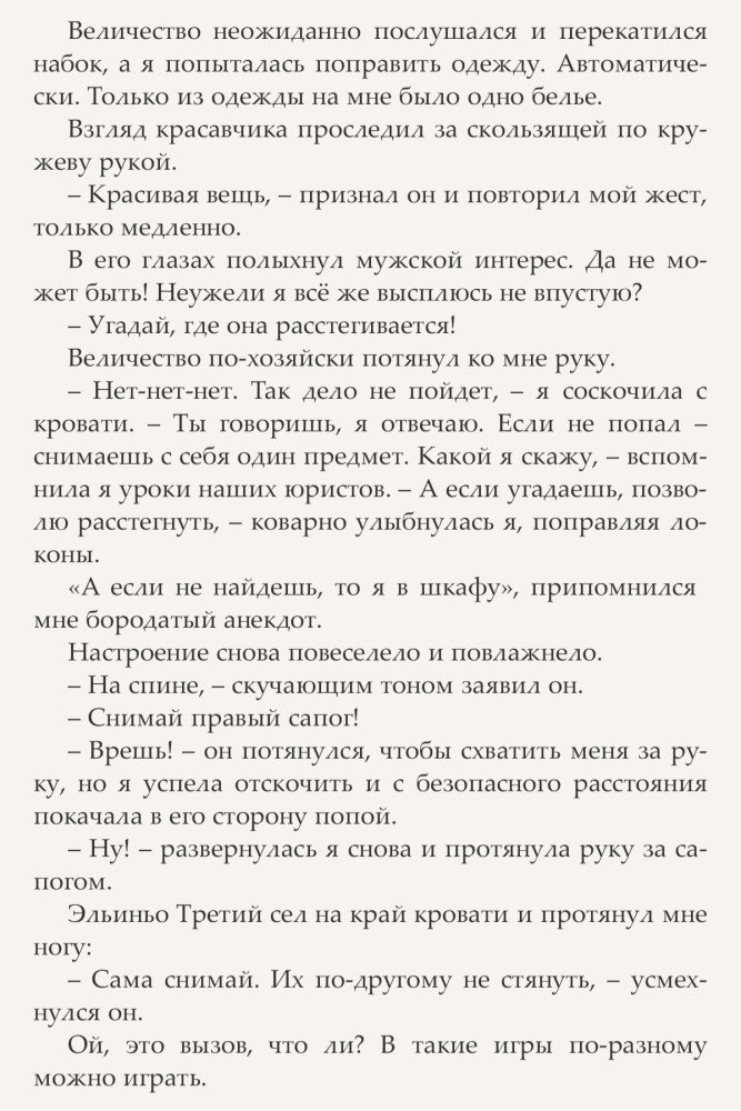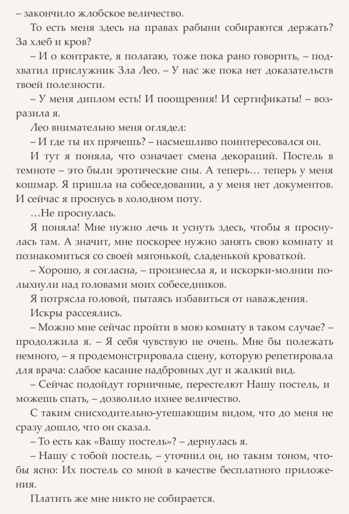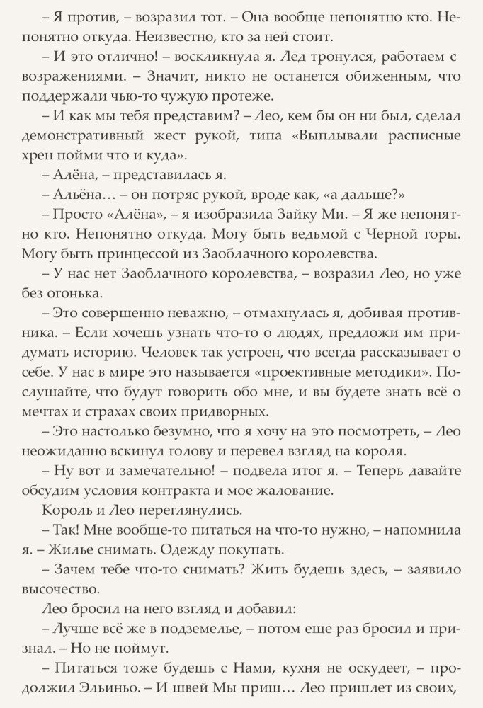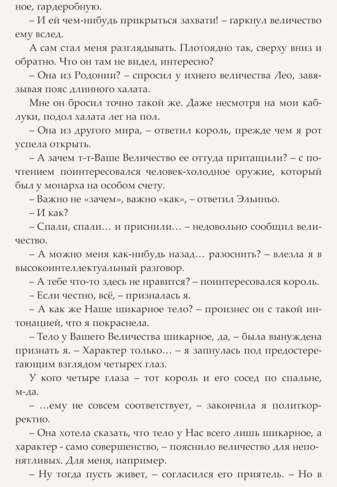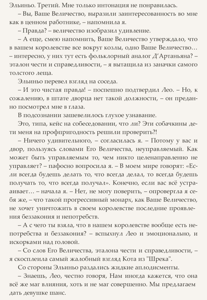 Ну вот кажется ей удалось заполучить контракт на работу, причем строго по образованию и призванию. Ведь как порядочная попаданка, она всегда найдет, чем бы ей таким в этом самом мире заняться, чтобы не превратиться в просто-коврик-у-ног-Его-Великолепия. Теперь она – HR при Дворе короля Эльиньо III, у которого проблем куда ни ткнись: тайные заговоры, интриги советников, покушения, а на носу и возможная война с соседним государством. Вот наша героиня, в меру своих сил, и взялась за их решение. Заодно и Их Величество немного подрессировать и корону с него посбивать.