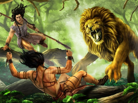 Лев сделал последнюю попытку, и древко вырвалось из рук Тарша. Зверь решил уйти, но застрявшее в рёбрах копьё, волочась по земле, доставляло неимоверную боль. Сделав несколько шагов, он упал. Подскочивший всадник метнул в него дротик, а набежавшие следом воины, принялись колоть копьями.