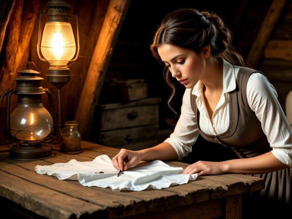 Оля шьёт себе одежду