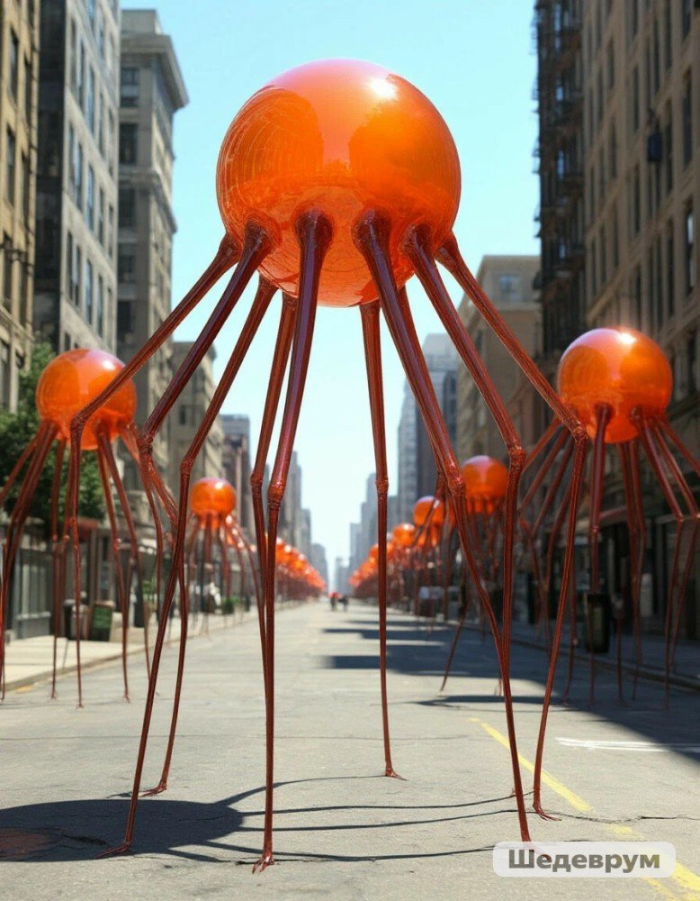 Те круглоголовые твари, которые загнали Олю на крышу. Нейросеть выдала смешной вариант, но чуждость существ отобразила.