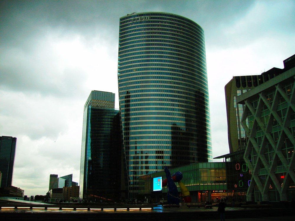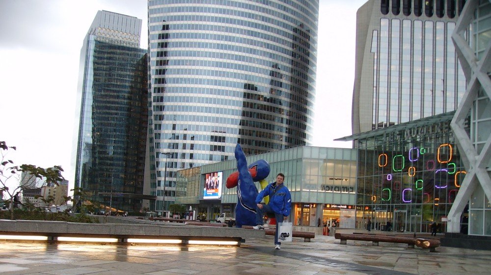 Закончился день (но, не дождь) – на Дефансе. Ля Дефанс («Оборона», это со времен франко-прусской войны еще) – так называется это скопище полунебоскребов и забавных модернистских скульптур – прямо еще один музей, бесплатный, под открытым небом! Мне тоже это все полюбилось еще с тех пор – потом заезжал частенько) Ну, и фнак там, опять же – большой музыкальный магазин)