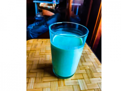 Ну отлично, кефира не оказалось, поэтому я взял снятые сливки, добавил сироп туда и взбил. Получилось ровно как я люблю, словно молочный очень насыщенный коктейль (я вообще люблю еду очень насыщенного вкуса), очень "гладкий", тоже, как я люблю. Питьевой йогурт, в общем, получился, не стал я его "густить".
