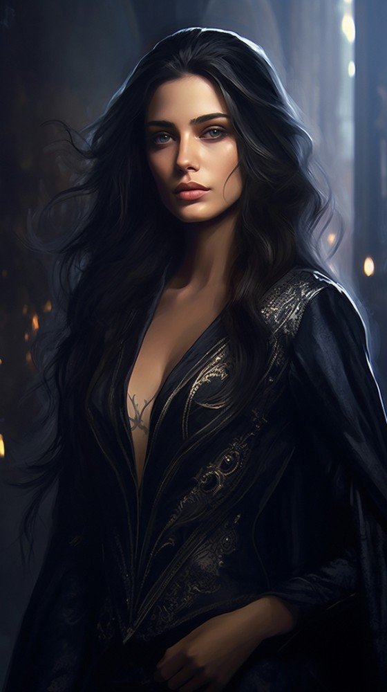 Высокая, в меру стройная, проницательные серые глаза (все же не 18 лет, а целых 27), правильные черты лица, роскошные иссиня-черные волосы и к этому всему прилагается независимость, стойкость, порой ослиное упрямство, живой, гибкий ум и острый язычок (в чем уже успели убедиться герои романа).