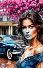 Красивая женщина на фоне особняка